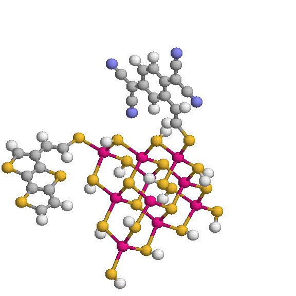 It were designed various biologically active, fluorescencing [12], small-gap semiconductor and proton-transfer switching single supermolecular devices based on biliverdin, fluorescein, CdS organic nano-clusters (Figure 5) and white phosphorus organo-metallic complexes.
